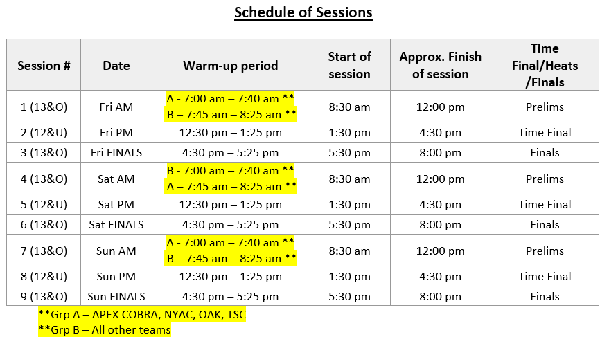 Standard times required to attend (attached in Meet package) must qualify with 2 standard times